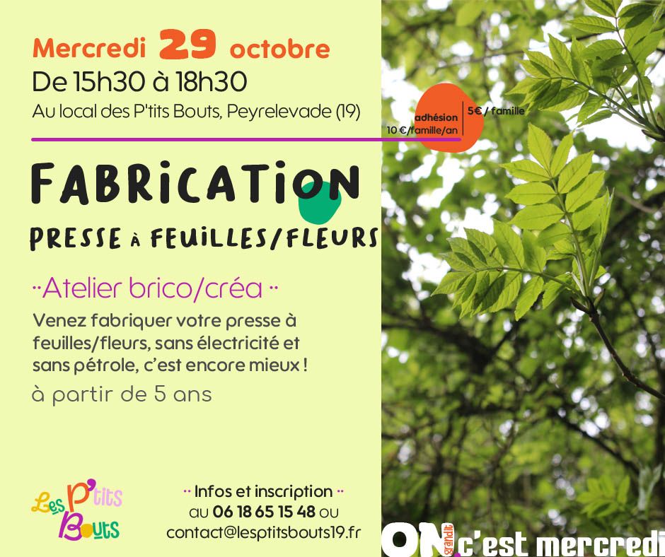 Infos et inscription : 06 18 65 15 48 ou contact@lesptitsbouts19.fr