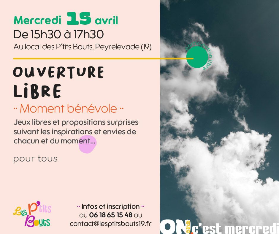 Cette semaine dans « On grandit c’est mercredi ! » c’est : Ouverture libre ·· Moment bénévole ·· Jeux libres et propositions surprises suivant les inspirations et envies de chacun et du moment… pour tous… |
